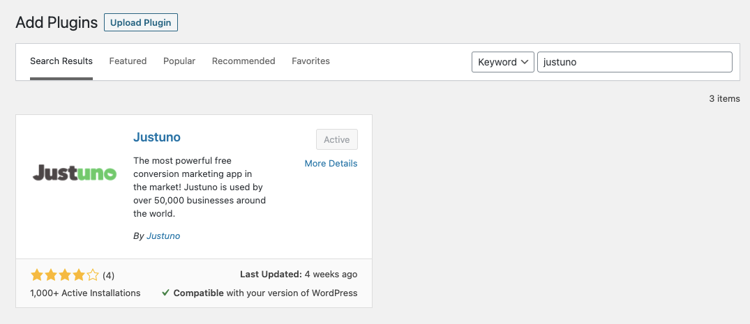 3. Once you have installed the Justuno plugin, Activate Justuno. There will be an activate option near the plugin title.