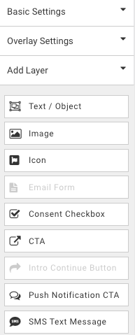 2. If an email layer already exists, move to the next step. Within the design canvas view, find the Email Form in the layers area and click to add that layer to the promotion overlay. While either the Email Form field or the submit button field is selected, hit Change Form on the right-hand side of the editor.