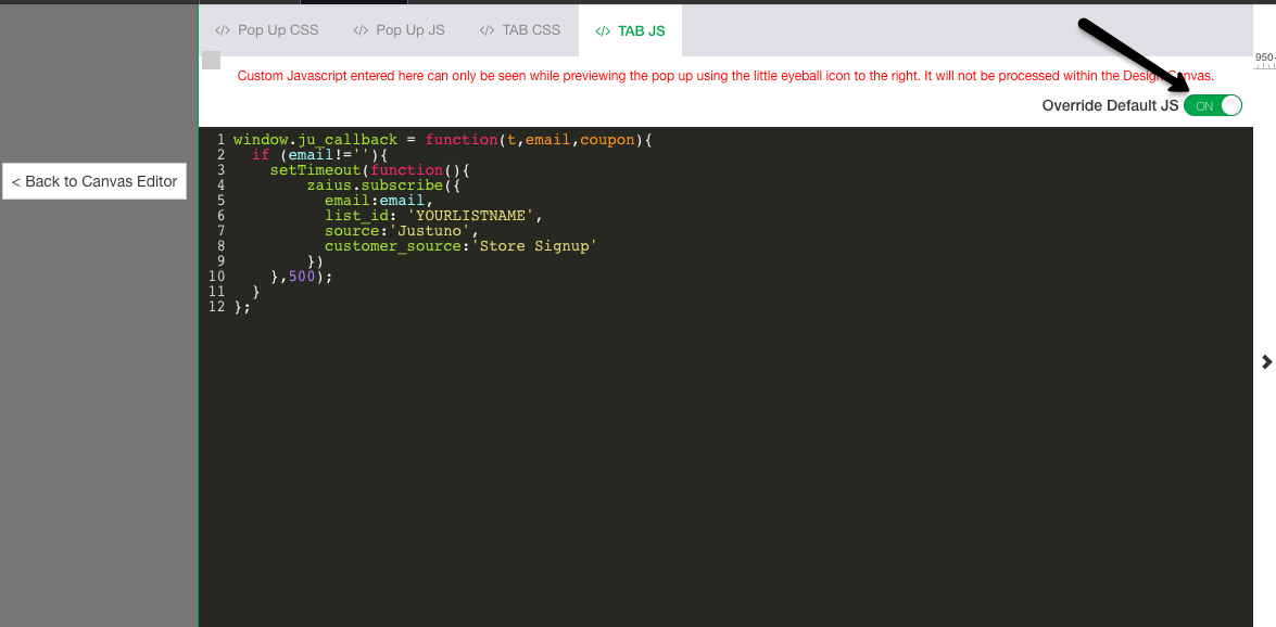 Step 3: Make sure you turn on the custom code override toggle