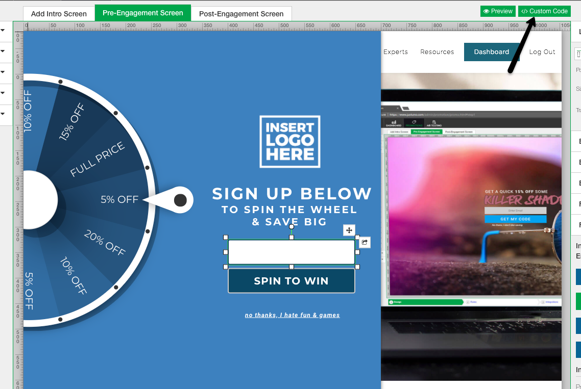 Step 1: In the design canvas, find the custom code section